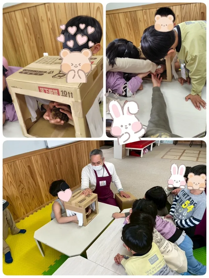 今日は、感触遊びとして、「箱の中身はなんだろな」ゲームをしました!🙋